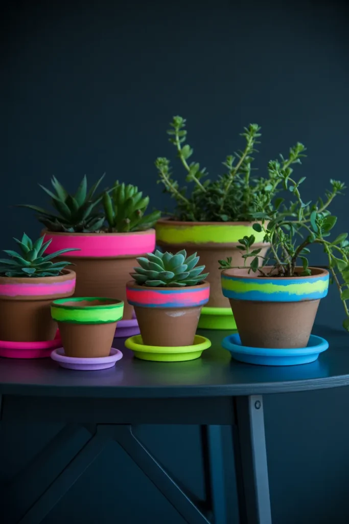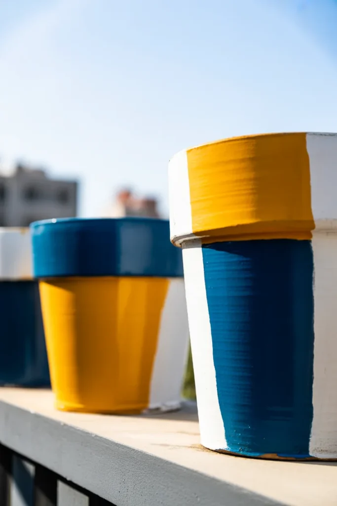 2. Bold Color Block Painted Flower Pots That Demand Attention