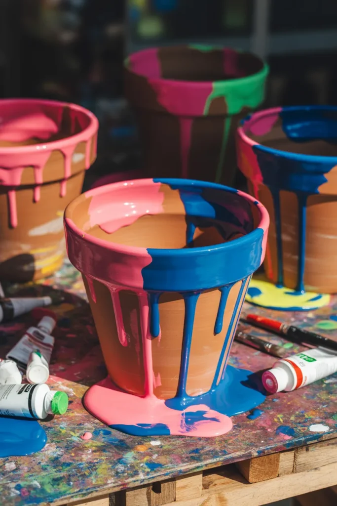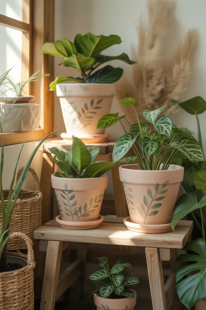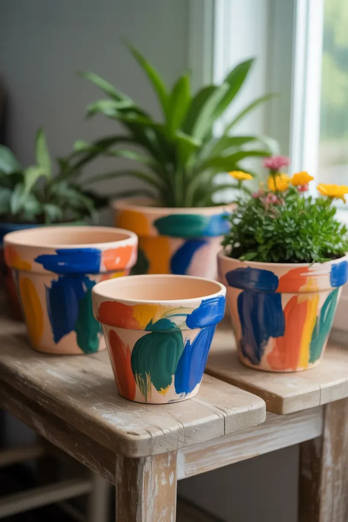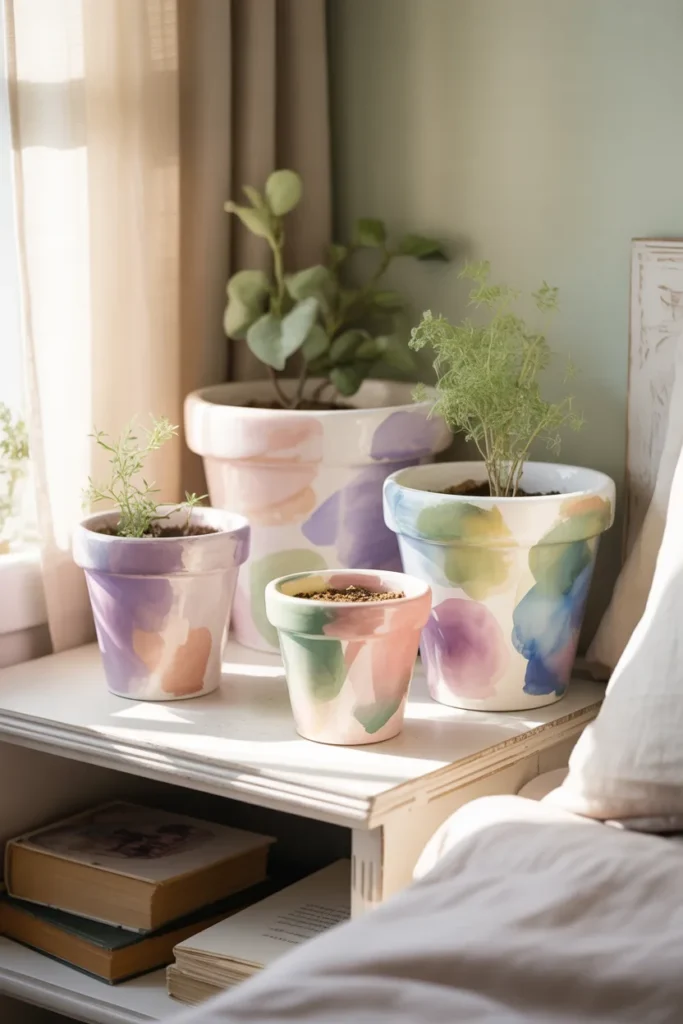 1. Soft Pastel Painted Flower Pots for a Calm, Dreamy Corner