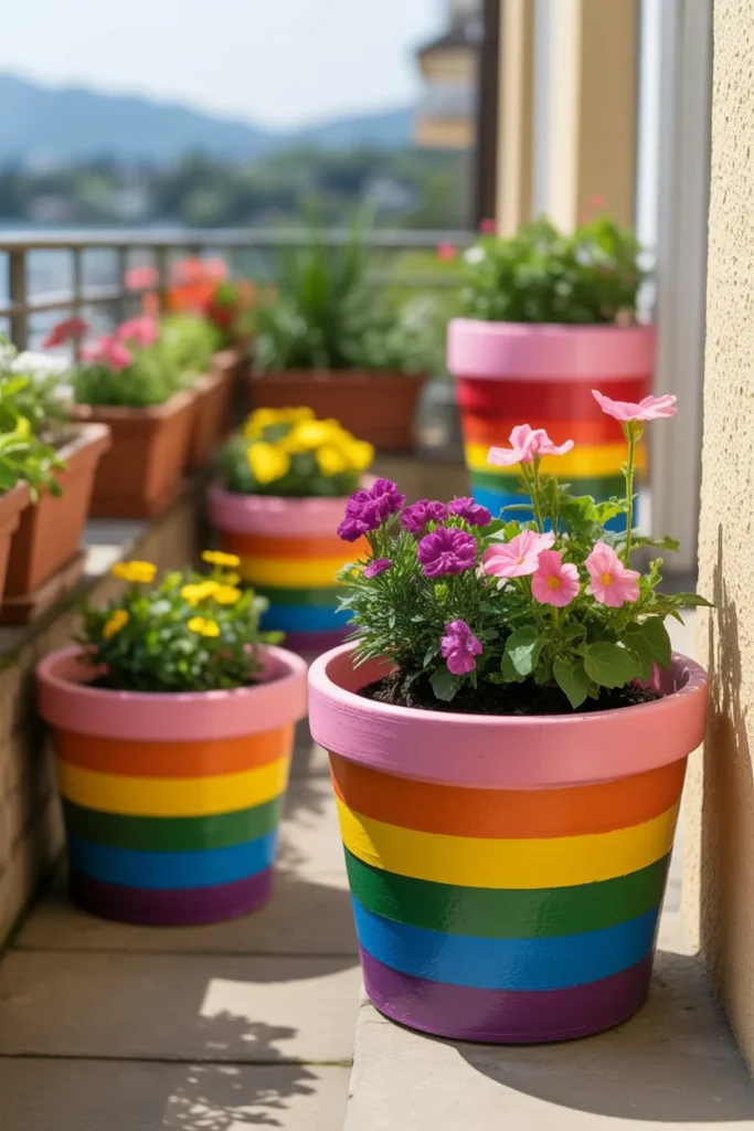 12. Rainbow Painted Flower Pots That Brighten Everything