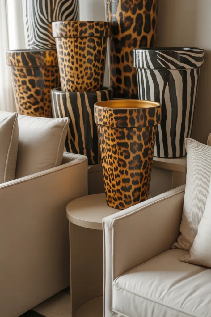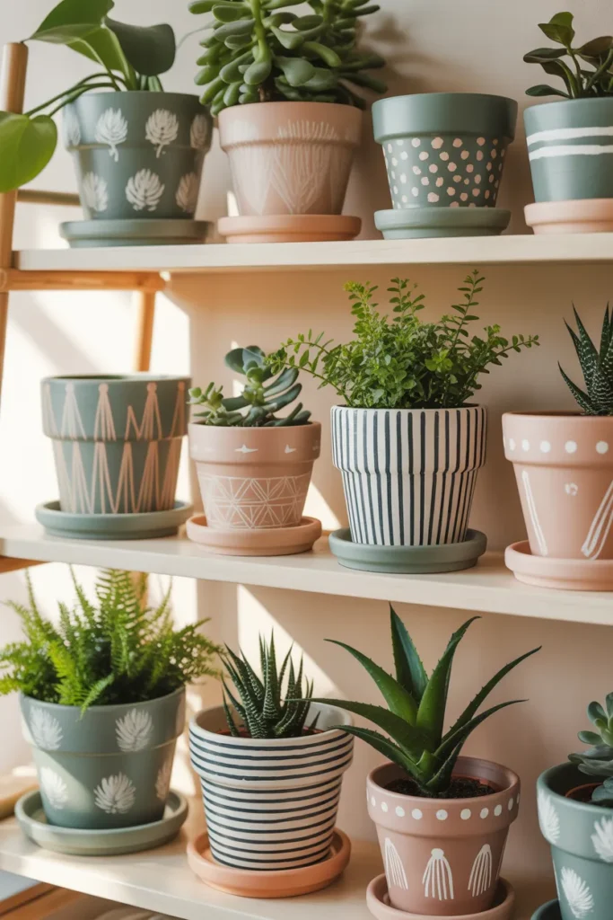 33. Mixed Pattern Painted Flower Pots for a Collected Look