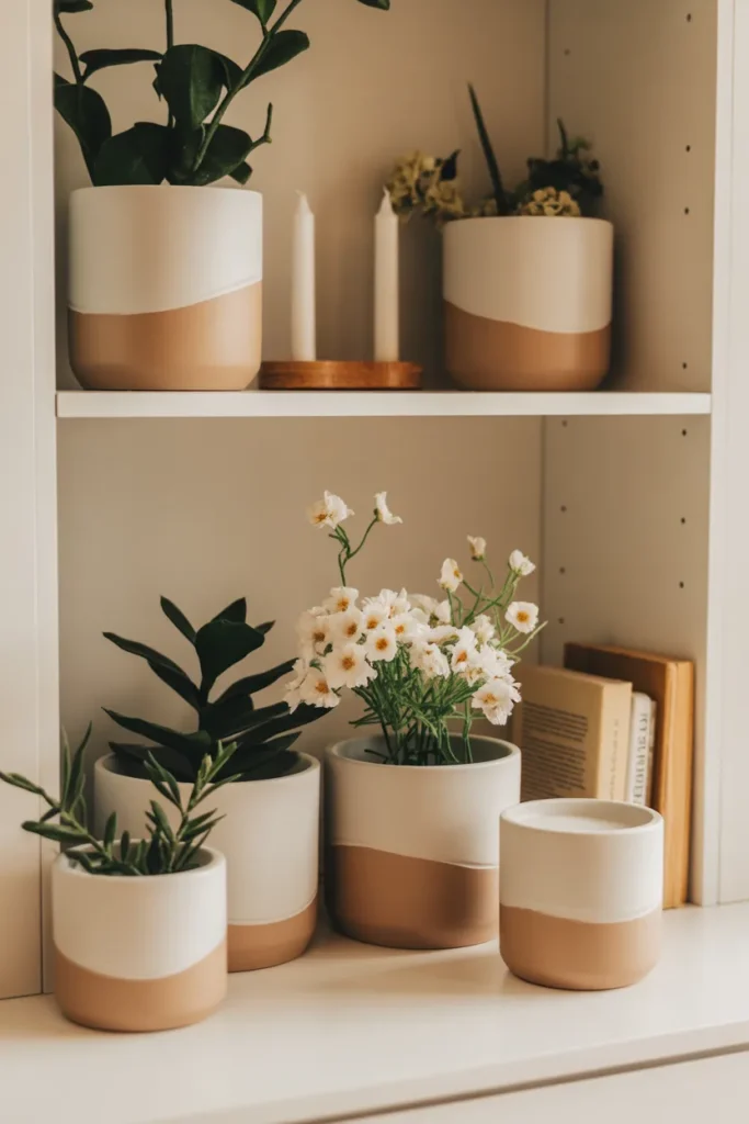 Neutral painted flower pots do exactly that. They feel soft, warm, and grounded.