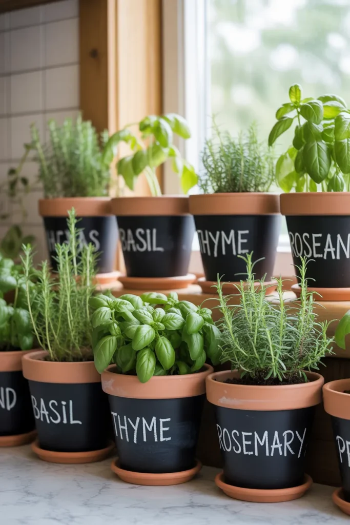 11. Chalkboard Painted Flower Pots for a Fun Twist