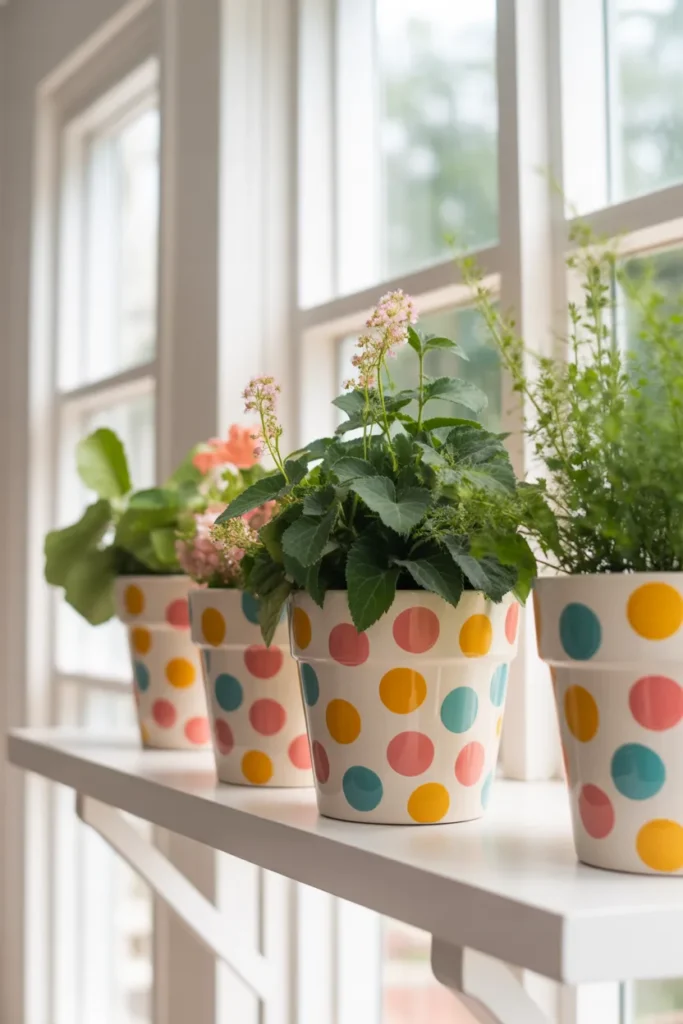 9. Polka Dot Painted Flower Pots That Feel Playful