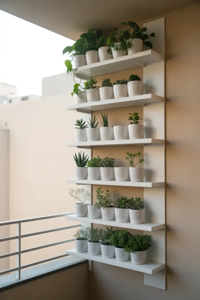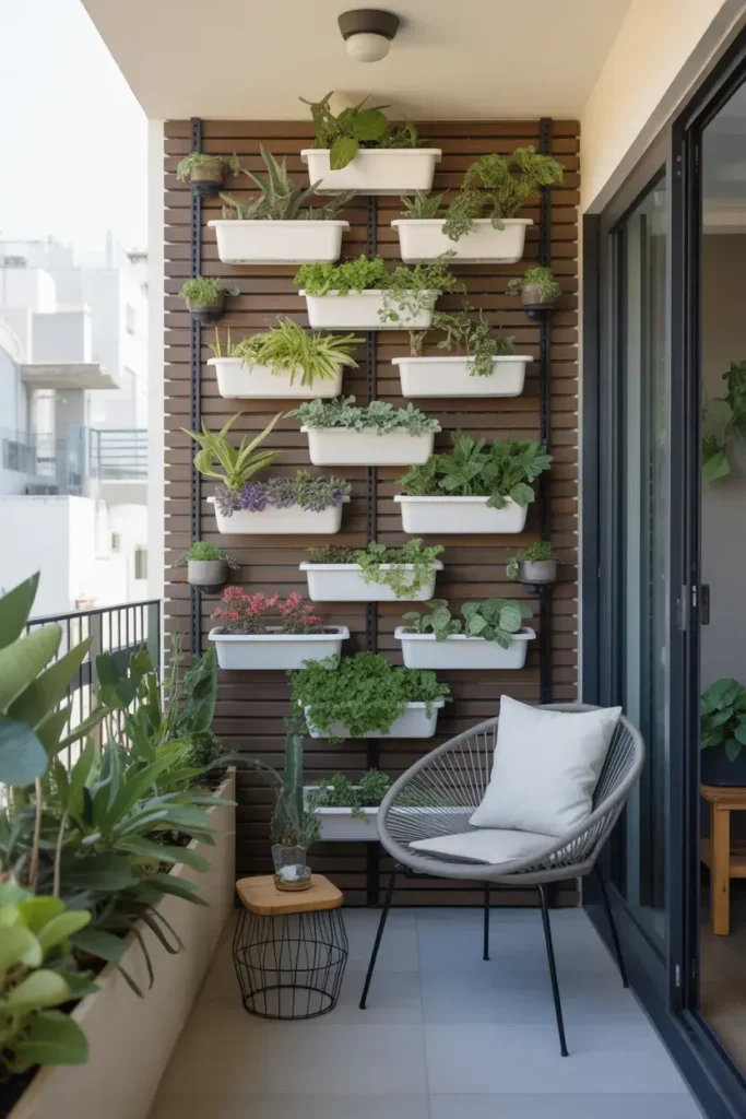 A vertical garden transforms a blank wall into a lush green feature without crowding your corner. It’s especially perfect for balconies where every inch matters.