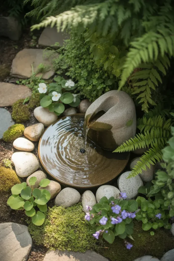 A quiet corner with a soft water trickle instantly changes the mood—it’s calmer, cooler, and feels more intentional.