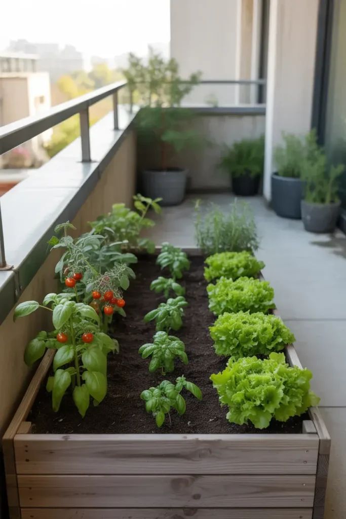 A small raised bed tucked neatly into a corner feels organized and intentional. It creates a defined area for planting instead of scattered pots.