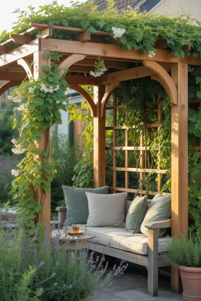 If you choose flowering climbers, you’ll also get seasonal color, which keeps the space feeling fresh.