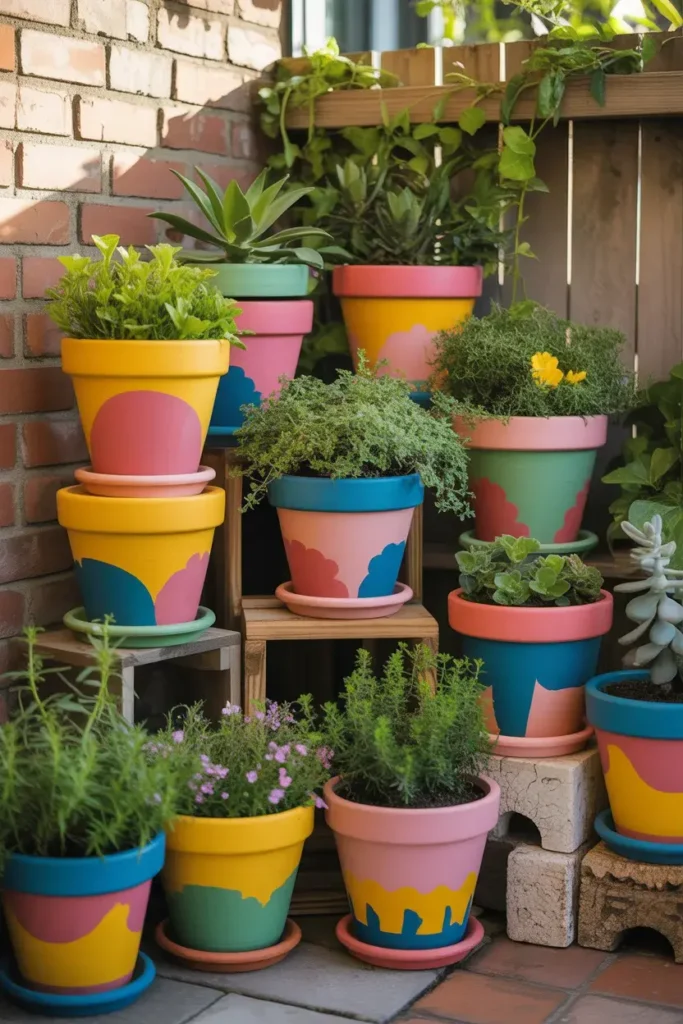- Use 3–5 pots in varying heights