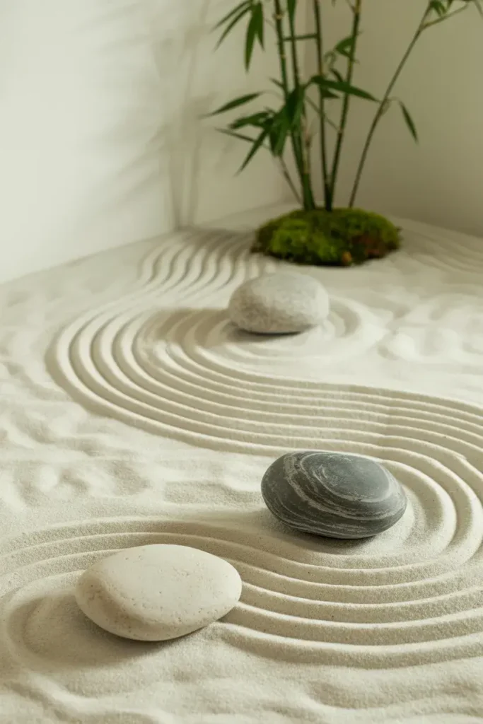 A few carefully placed stones, one or two sculptural plants, and plenty of empty space—it feels quiet and intentional.
