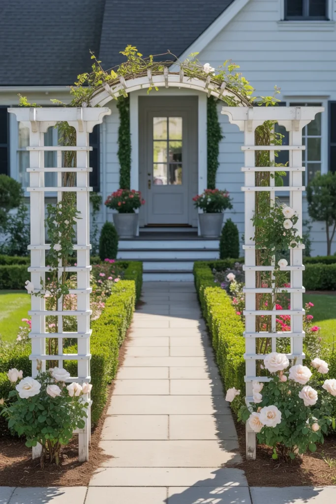 4. Arched Trellis Entryway That Feels Grand
