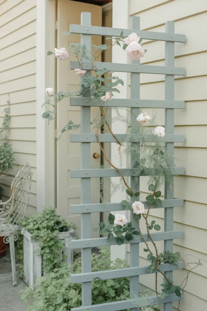 You don’t always need bold contrast to make an impact. Sometimes, the softest colors are the ones that quietly stand out. A trellis painted in sage green or dusty blue has this calm, airy feel—like it belongs there naturally.