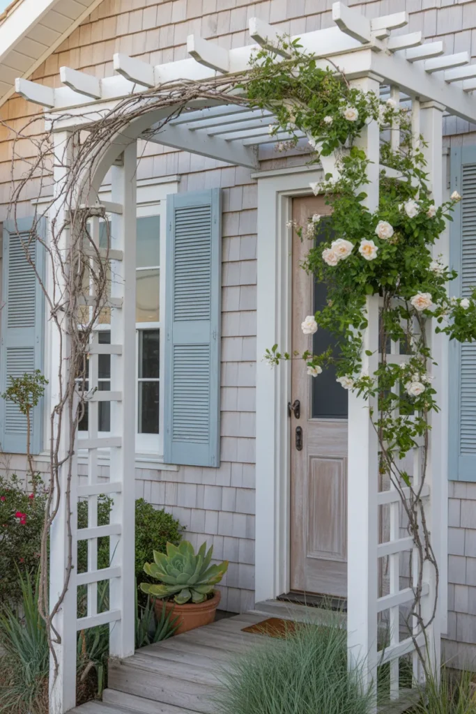When it’s covered in greenery, it almost forms a natural tunnel, which makes the entrance feel more intentional and a lot more memorable. This works especially well if you have a walkway leading from a gate to your front door—it turns that short walk into an experience instead of just a pass-through.