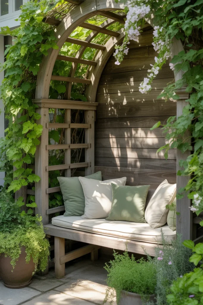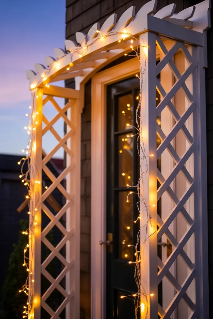 This one’s fun because it changes throughout the year. You can decorate your trellis differently for each season—lights in winter, flowers in spring, maybe even wreaths in fall.