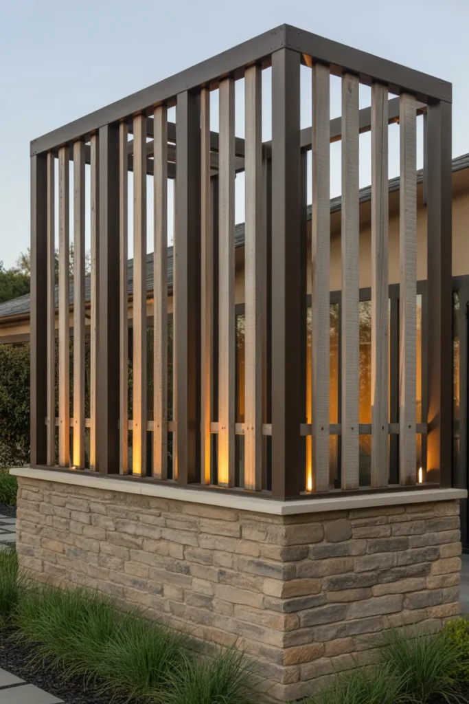Mixing materials always makes a space feel more premium. A stone base with a trellis above adds texture and depth without feeling overdone.