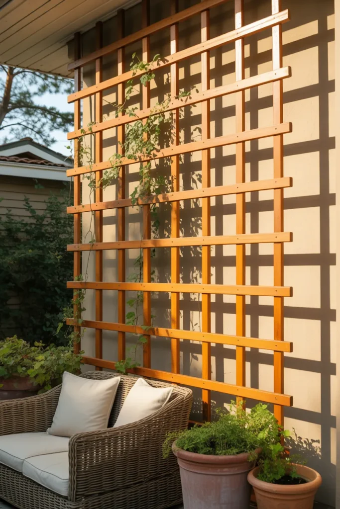 3. Wooden Grid Trellis for Warm Texture