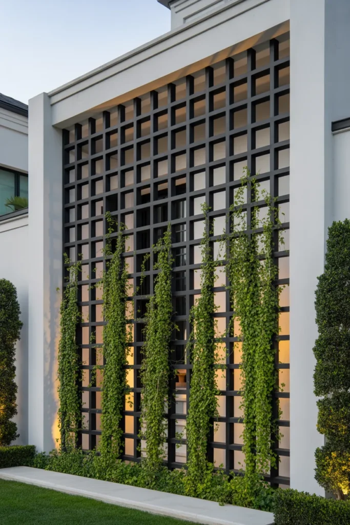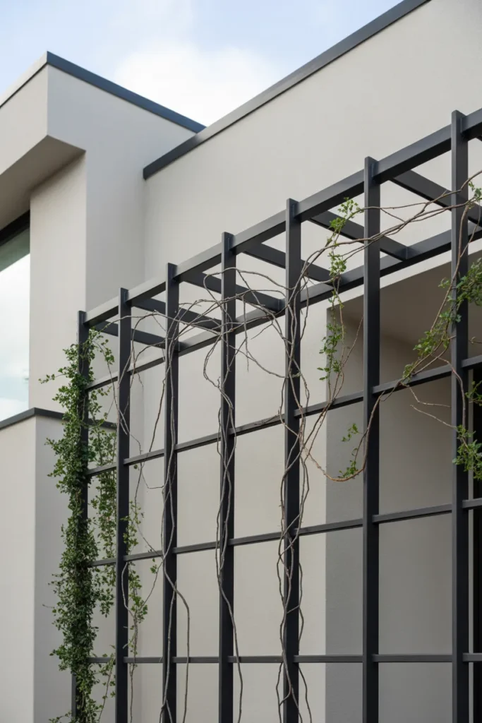 Let’s be honest—white isn’t for everyone. If your home leans modern, black metal trellises feel sleek and intentional.