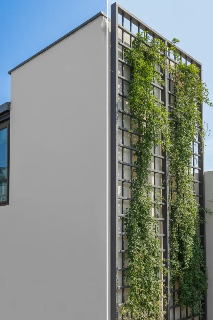 Instead of leaving it flat, you’re adding depth and movement. As plants start climbing, the whole wall evolves over time, which makes your exterior feel more dynamic instead of static.